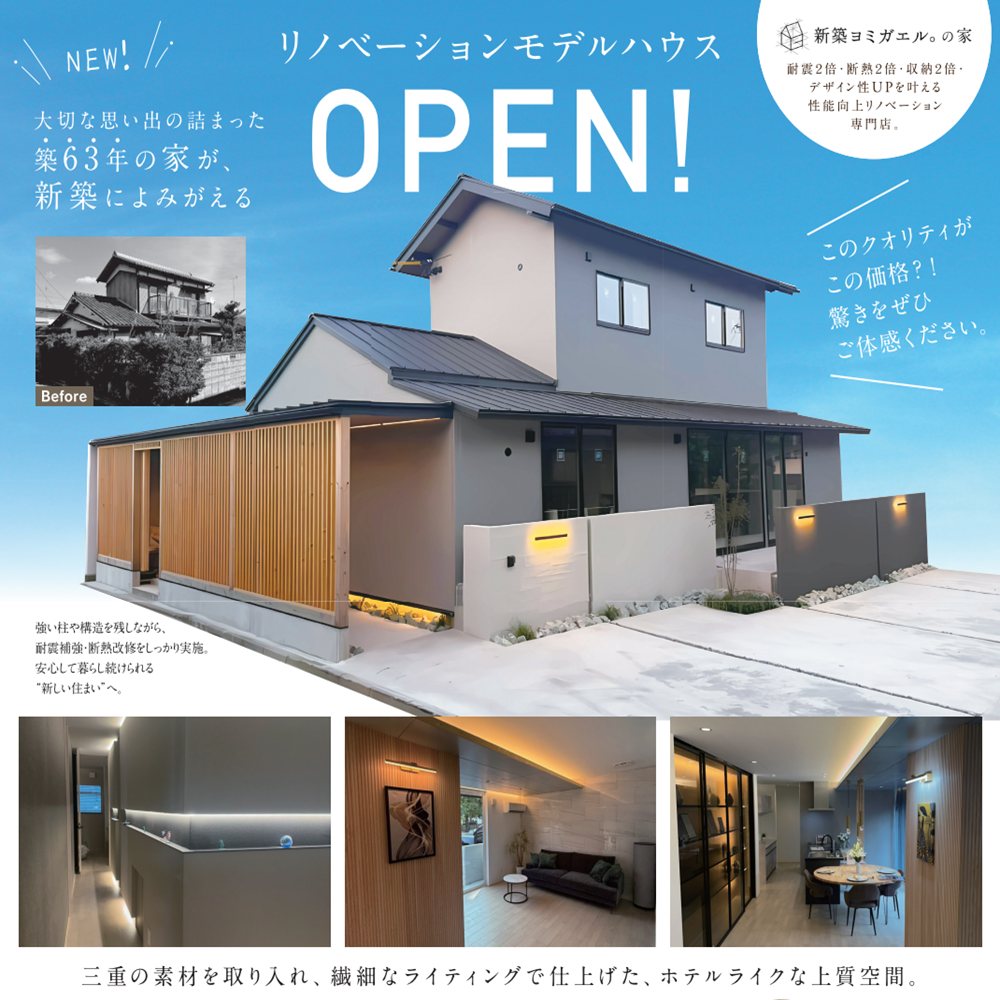 新築ヨミガエルは、三重県を中心に耐震2倍・断熱2倍・収納2倍・デザイン性UPを叶える性能向上リノベーション専門店です。